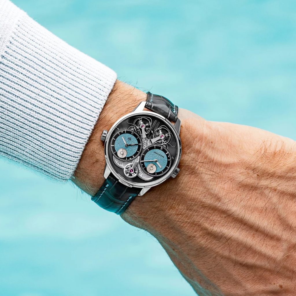 At the heart of this horological experiment is our ARF22 calibre. It is the 18th in-house movement born from our manufacture, engineered, designed and built entirely by us. Like the 17 movements before it, it’s a true in-house affair. It features two balances that work in resonance, allowing their oscillations to synchronise and mutually regulate each other.