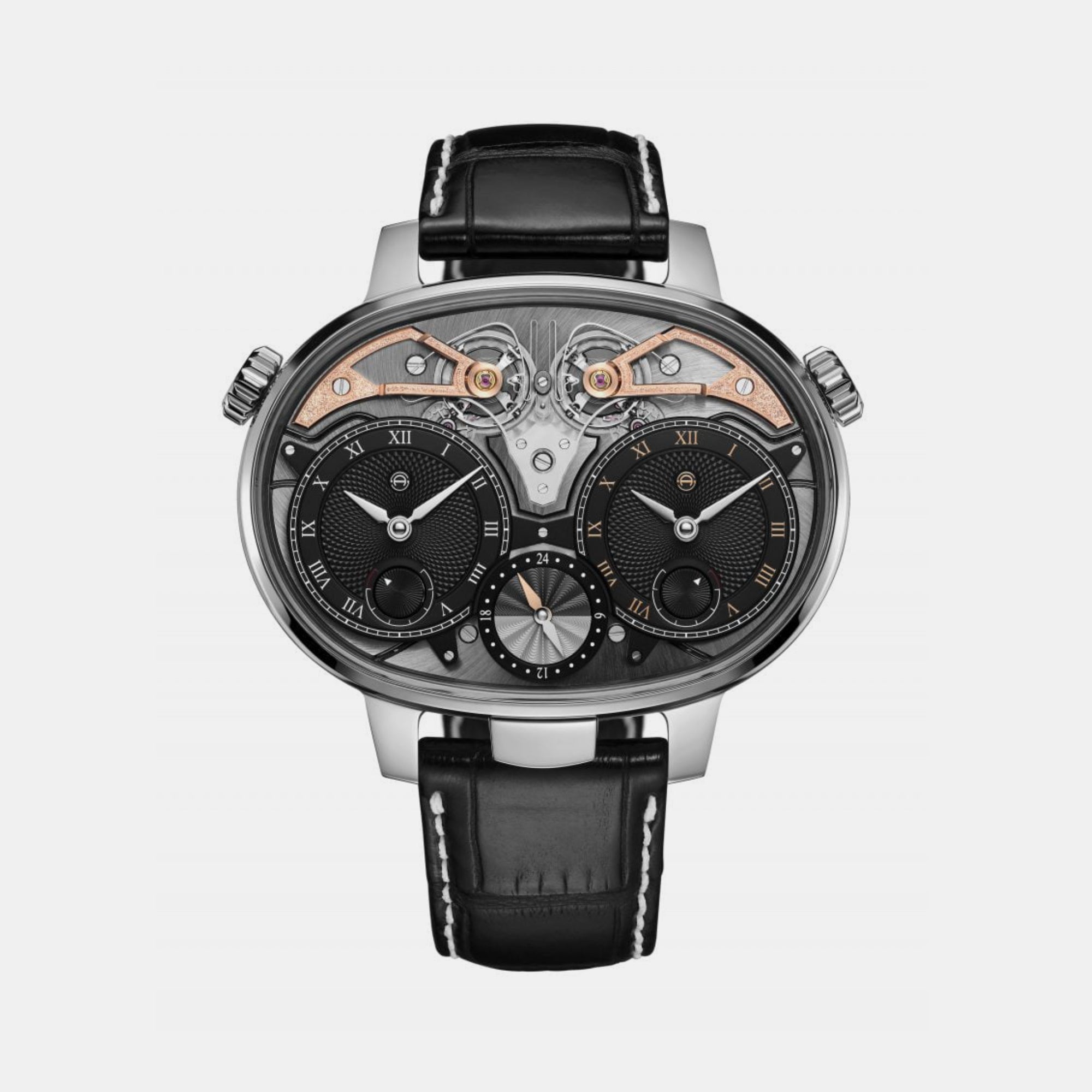 The Dual Time Resonance is limited to just 32 pieces in total, eight each in sapphire crystal, titanium, 18-carat white gold and 18-carat rose gold. 32 pieces that show, in an oval-shaped nutshell, what we do: push the limits of movement engineering, reveal the beauty of mechanics, and celebrate the art of hand finishing.