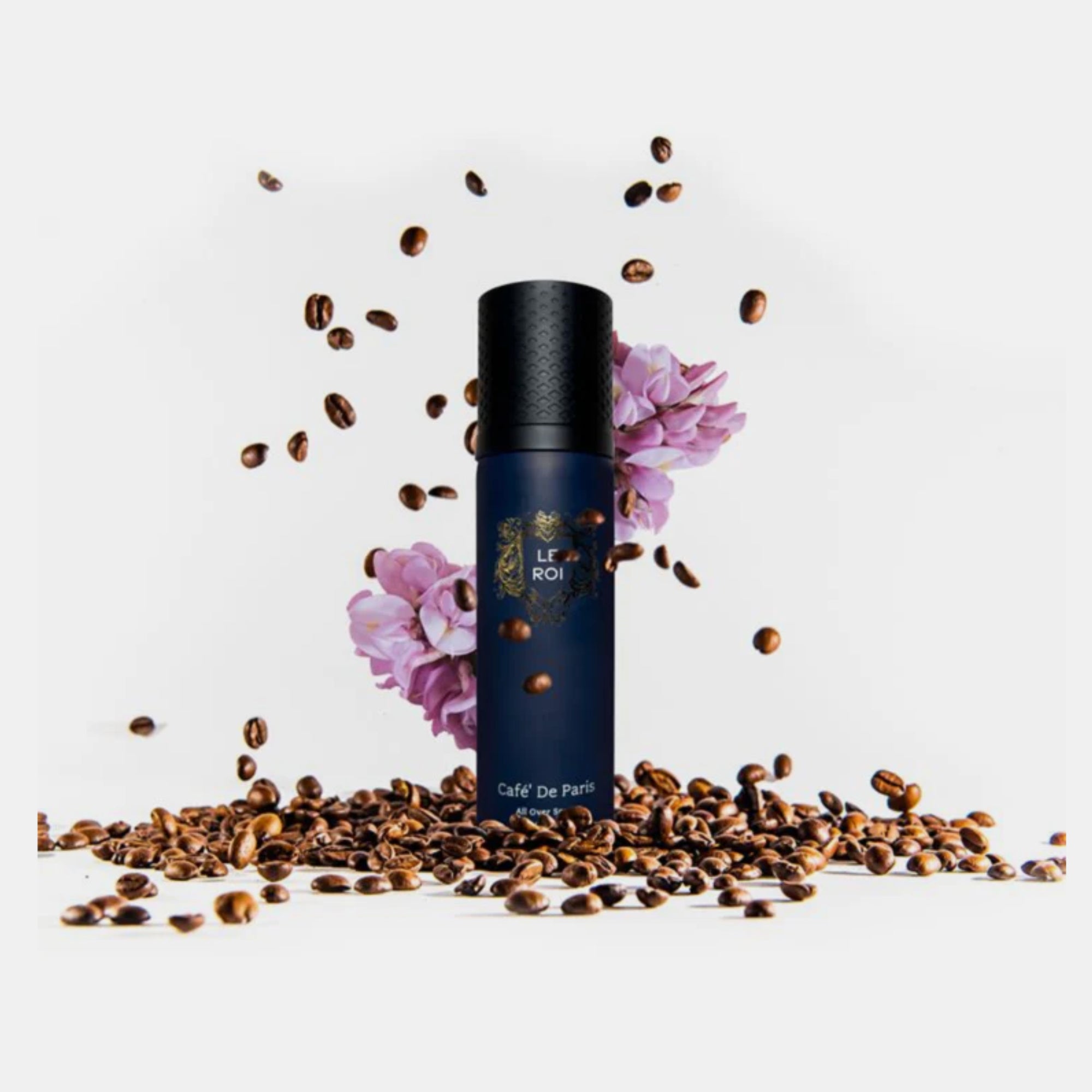 Le Roi Café de Paris is a woody-ambery fragrance with a unique gourmand twist. It opens with the bold richness of freshly brewed coffee and sparkling Calabrian bergamot, spiced with a touch of pepper. The heart reveals soft cashmere musk and sensual cashmeran, blending into a base of white amber that lingers with warmth and sophistication.