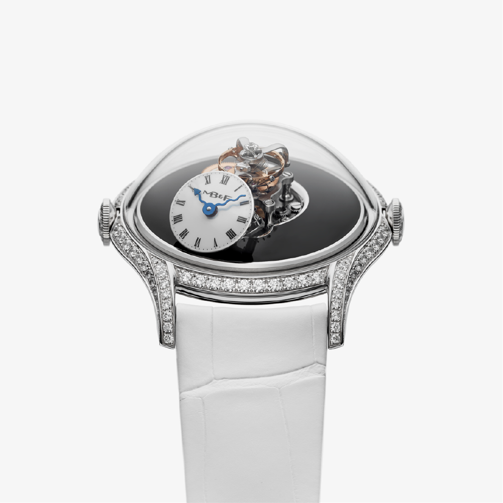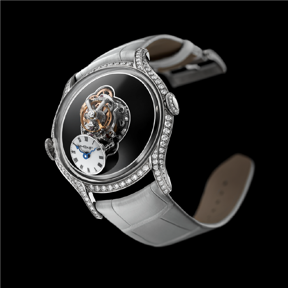 This Black Lacquer edition is housed in 18k white gold, its fluid, jet-black dial plate sitting beneath a dramatically domed sapphire crystal. Rising from the centre is a flying tourbillon, elevated high above the movement and crowned with a single rotating diamond catching light with every revolution.