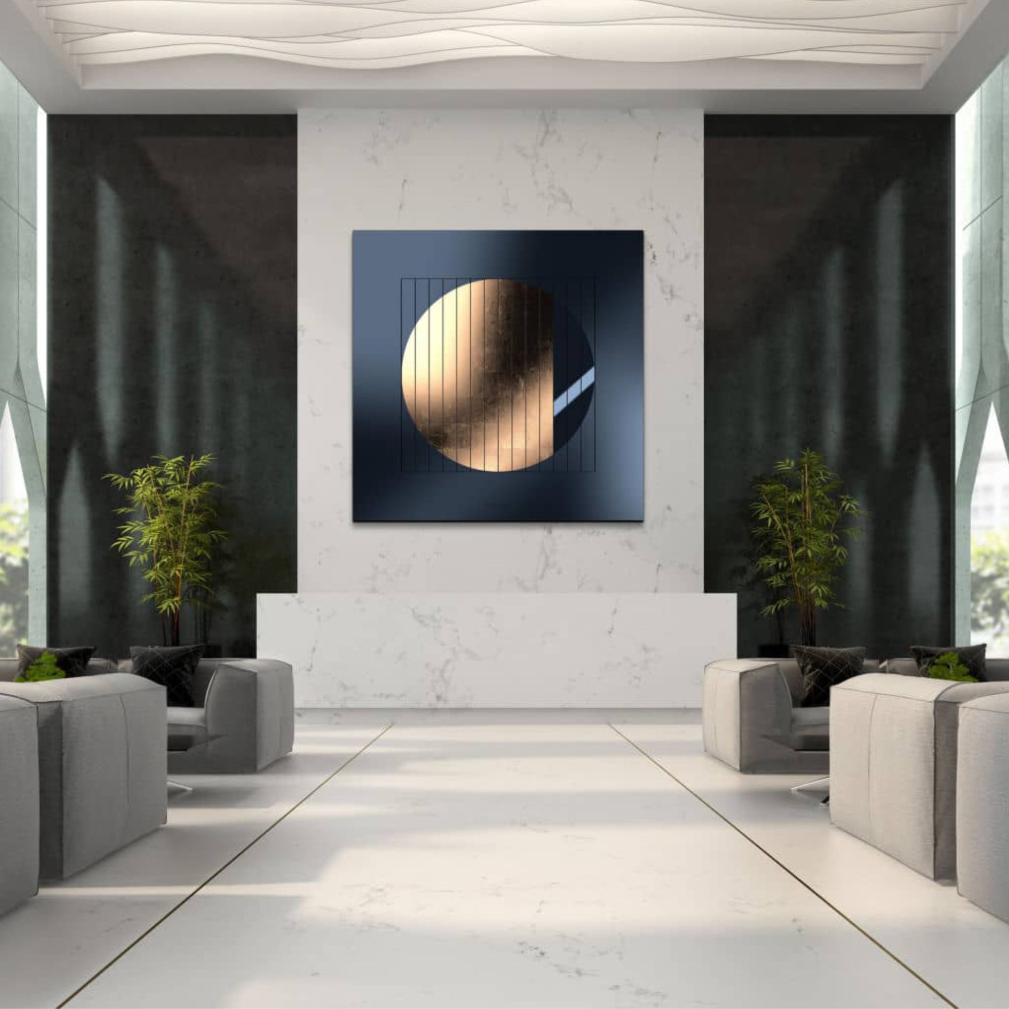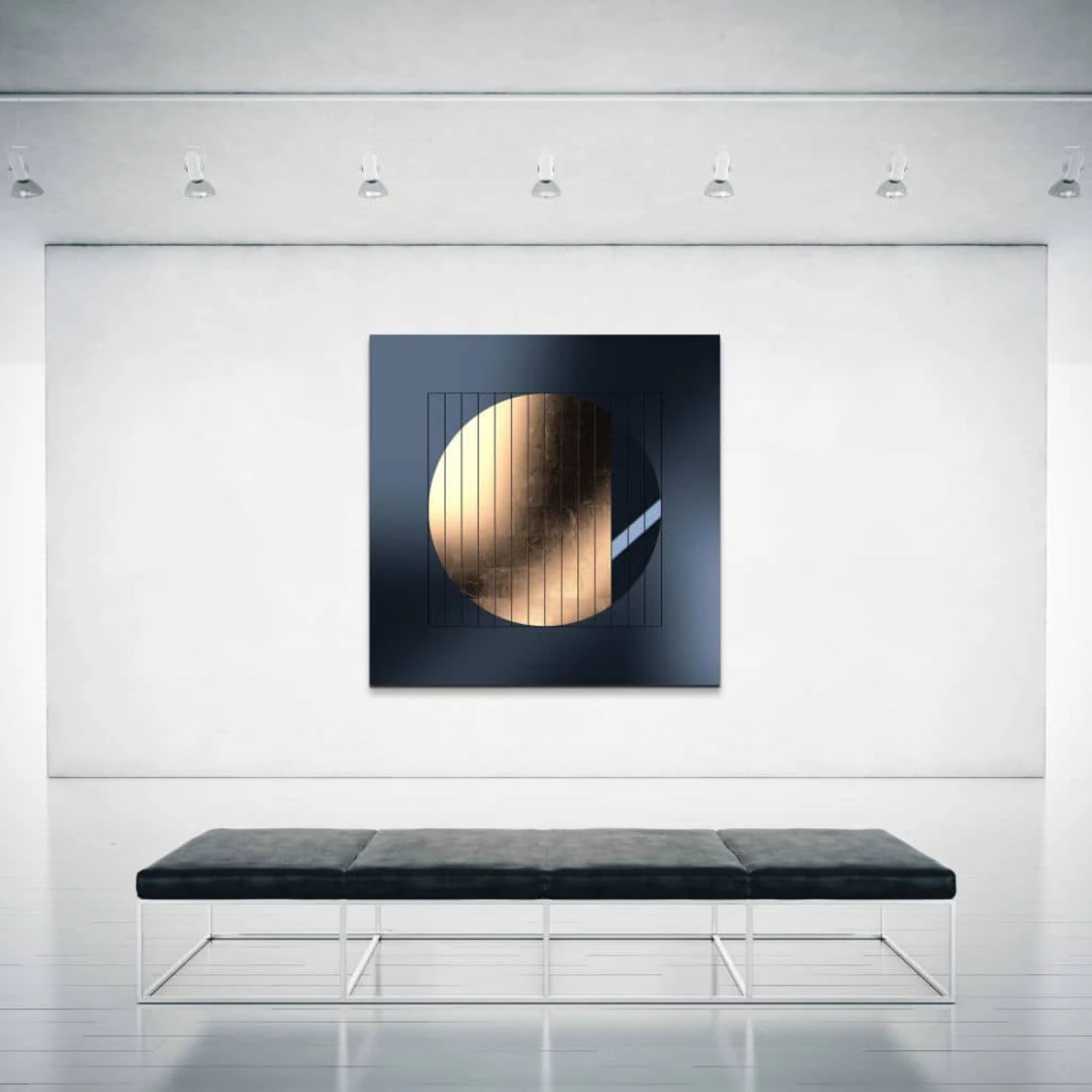 The QLOCKTWO MOON 90 MIDNIGHT MOON GOLD is a completely new form of time display, a breathtaking time display and a unique design object. It shows in perfect beauty the course of a lunar cycle from full moon to full moon.