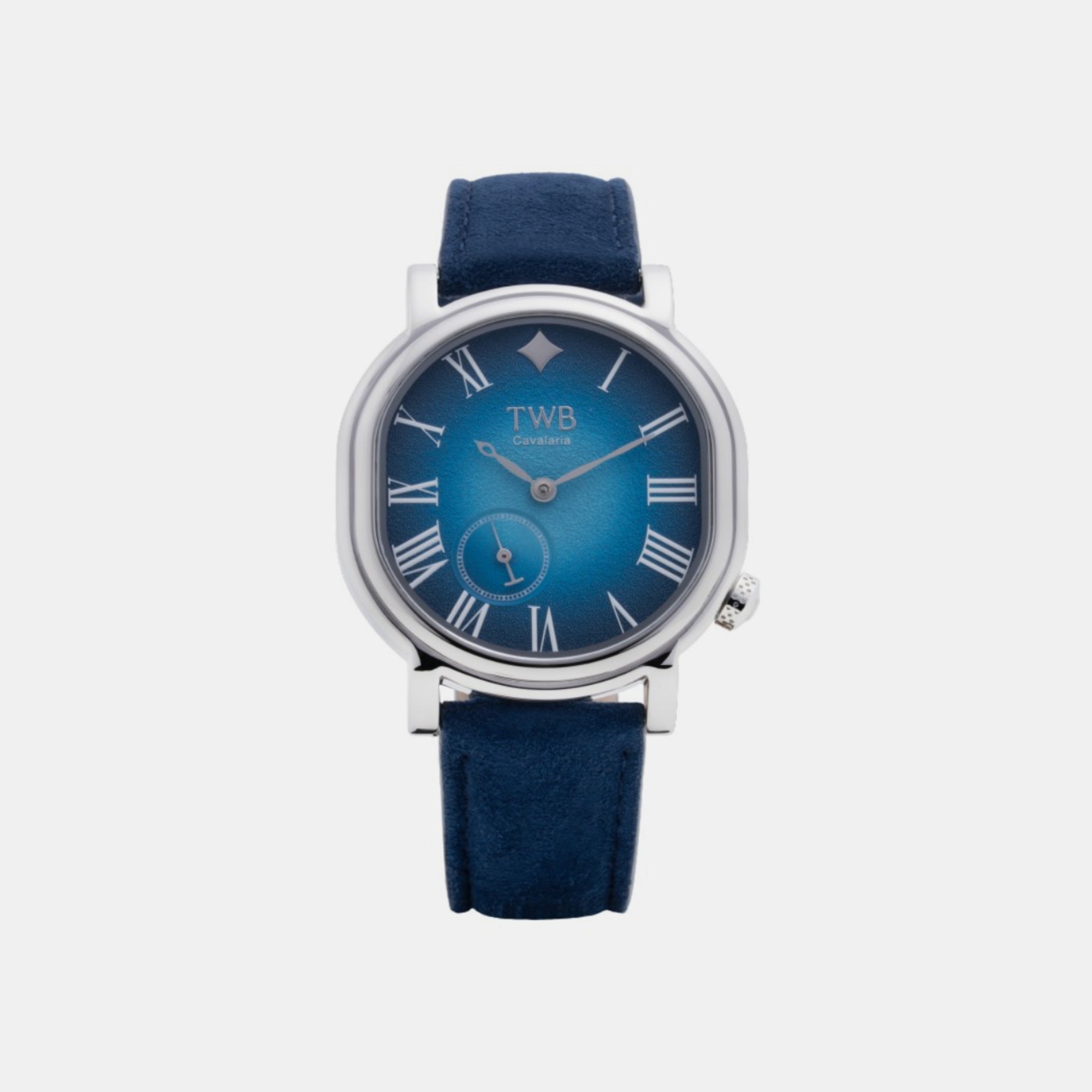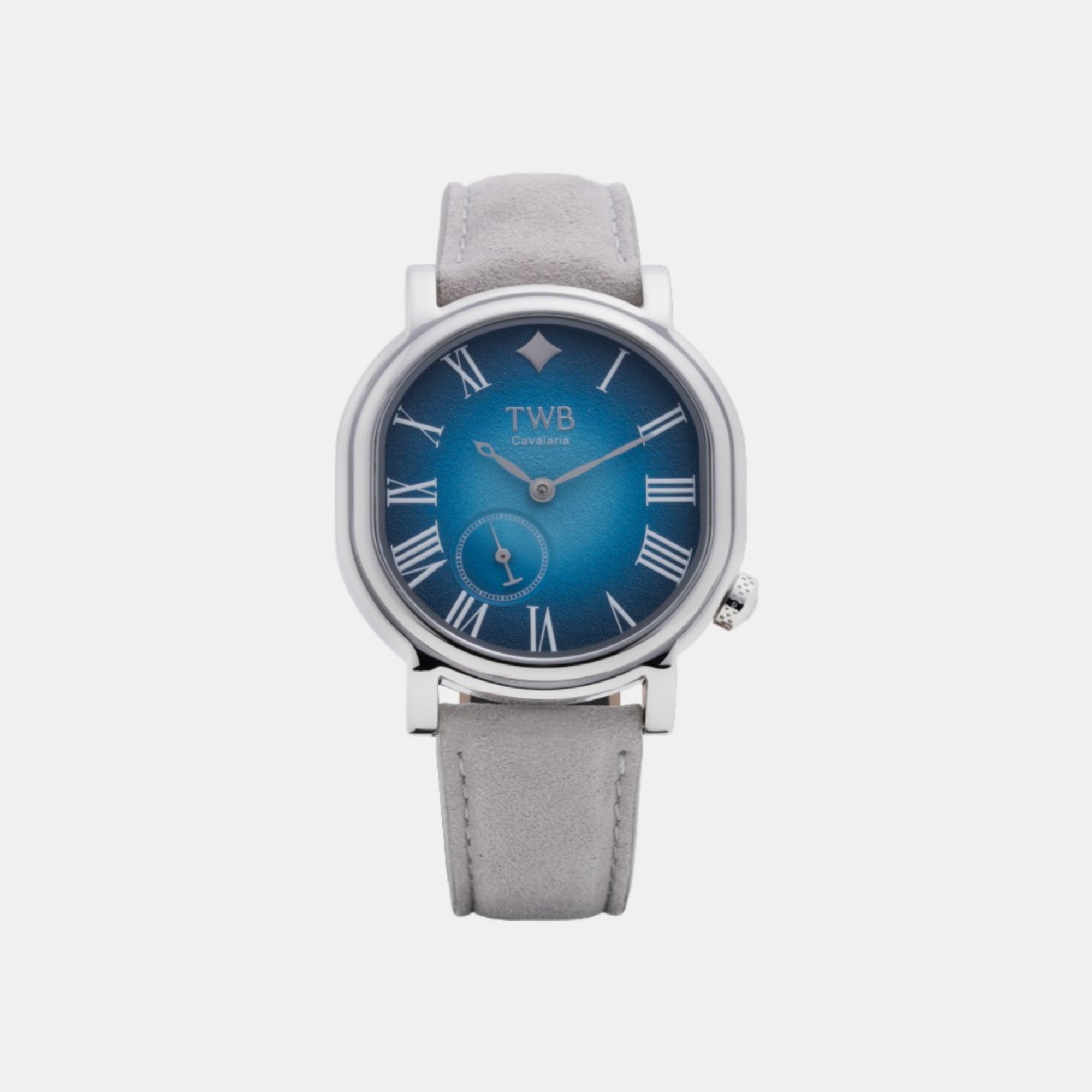 The Cavaleria Bloura 36mm is a refined celebration of modern elegance, blending soft minimalism with an enchanting burst of colour. Its 36×33mm polished stainless-steel case carries a graceful silhouette, framing a radiant sky-blue textured dial that shifts beautifully with the light. Roman numeral hour markers elevate the dial with classical sophistication, while the small-seconds subdial adds a touch of contemporary balance.