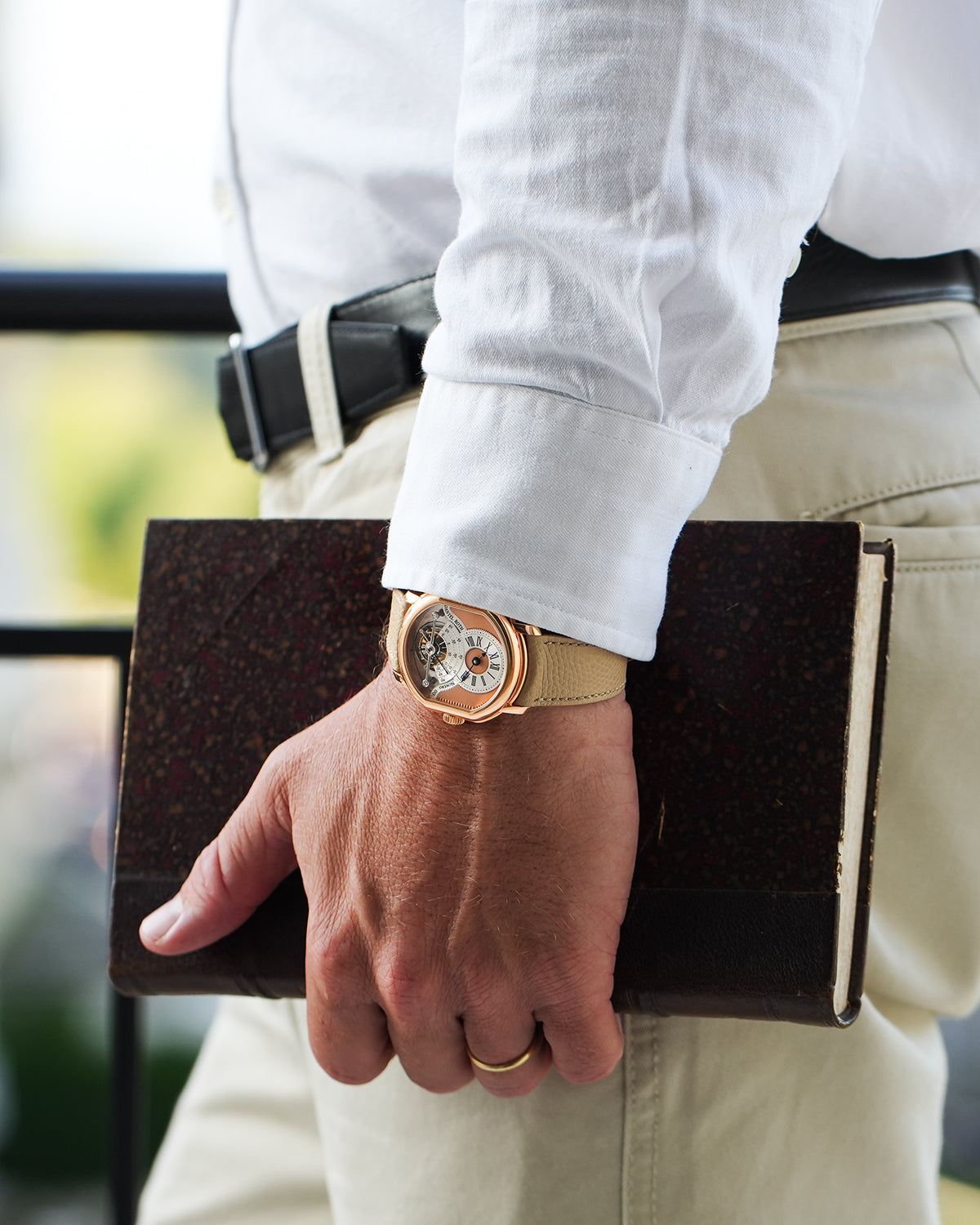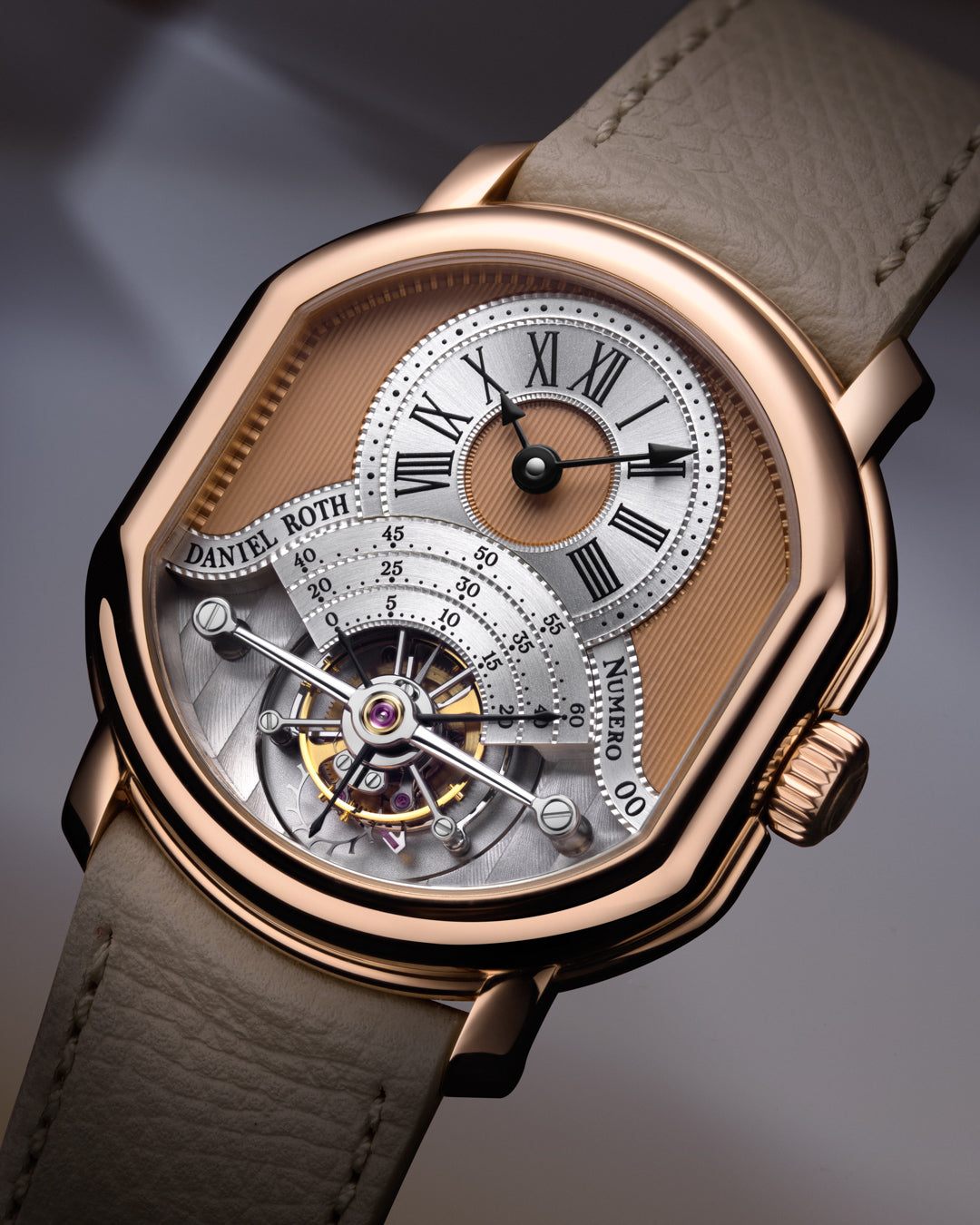 Through its sapphire caseback, the Tourbillon Rose Gold reveals exquisite Côtes-de-Genève striping, hand-polished anglage, and the hypnotic rotation of its one-minute carriage — a living tribute to Mr. Roth’s mechanical artistry.