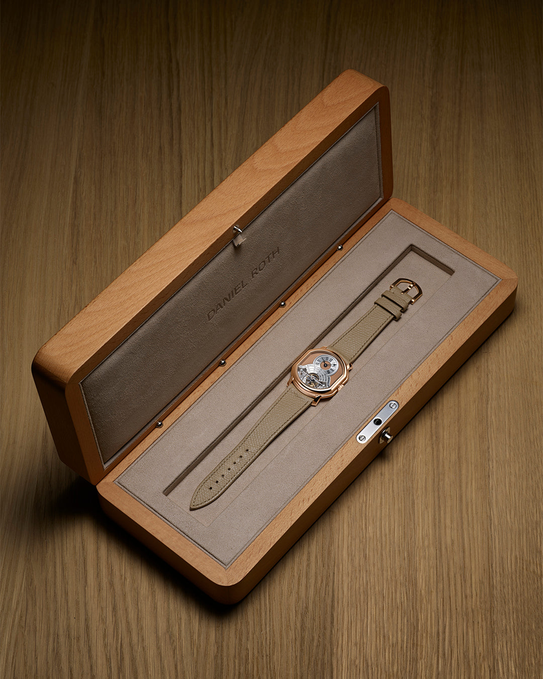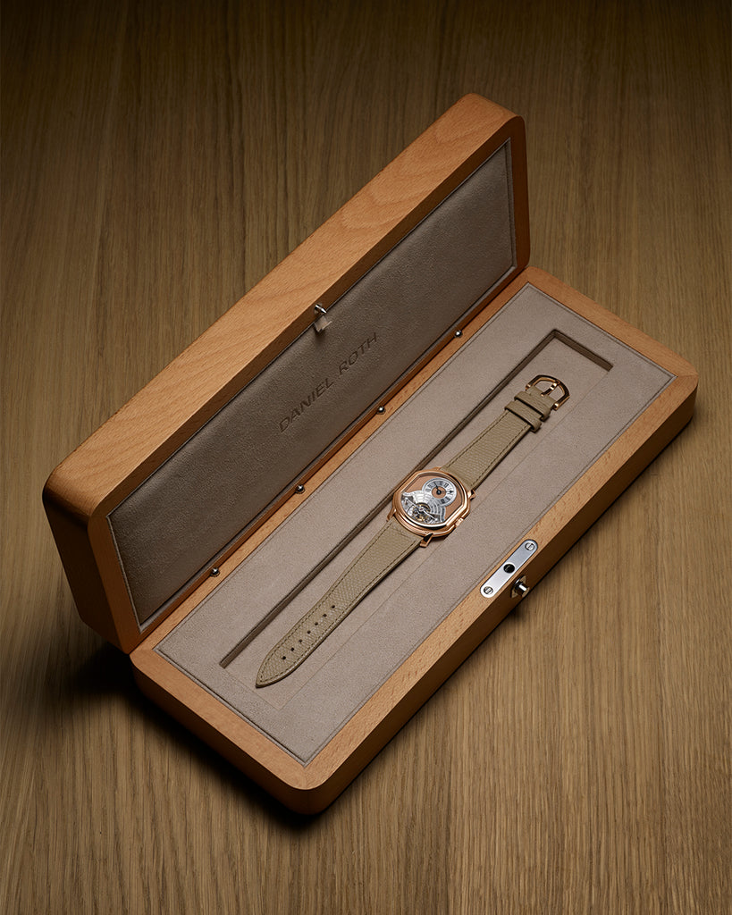 Crafted in warm 5N rose gold with a dial to match, the Tourbillon Rose Gold reinterprets one of Daniel Roth’s most defining complications — the one-minute tourbillon — with quiet confidence and contemporary refinement.