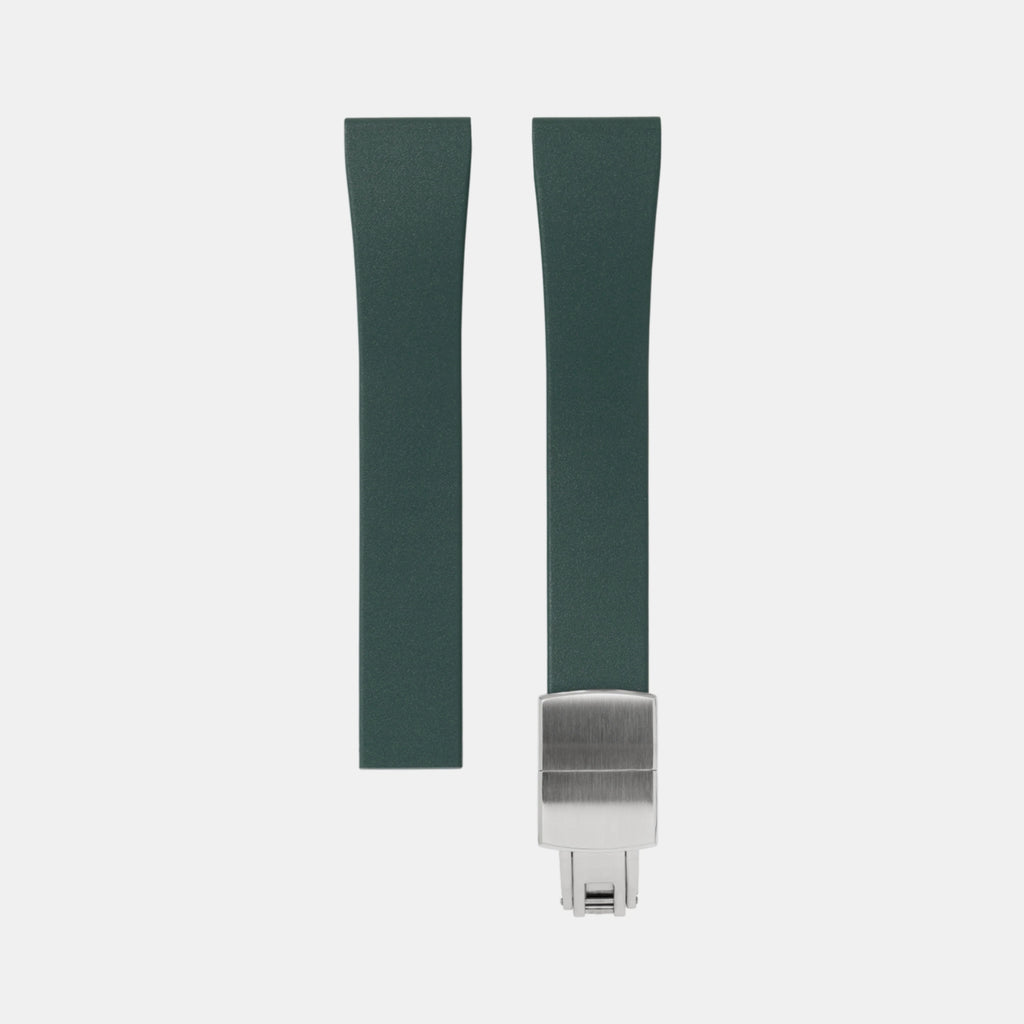 FKM Rubber Cut-To-Size ("CTS") rubber watch strap. Customisable to fit your wrist perfectly and secured with a sleek leaf-spring deployant clasp, it is also available in a range of colours to suit your personal style. This strap is not only comfortable and durable, it is also truly waterproof and easy to maintain. Whether you're hitting the gym, or dressing up for a night out, this strap has you covered.