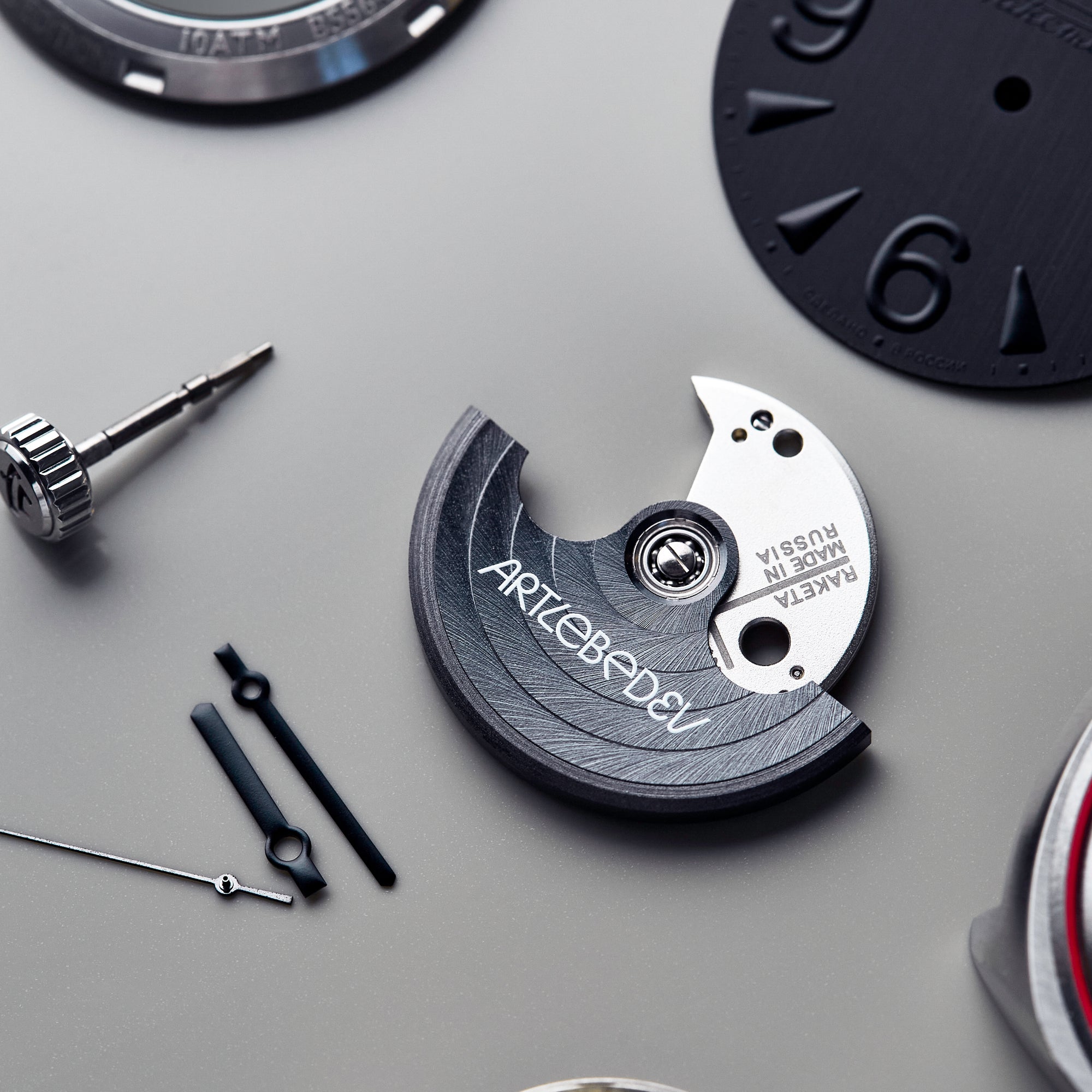 For the first time, Raketa uses a rubber strap with customizable length to fit your wrist perfectly. For easy adjustment, a video tutorial by Artemy Lebedev is available via QR code. So, you will a bit like a watchmaker when adjusting the strap!