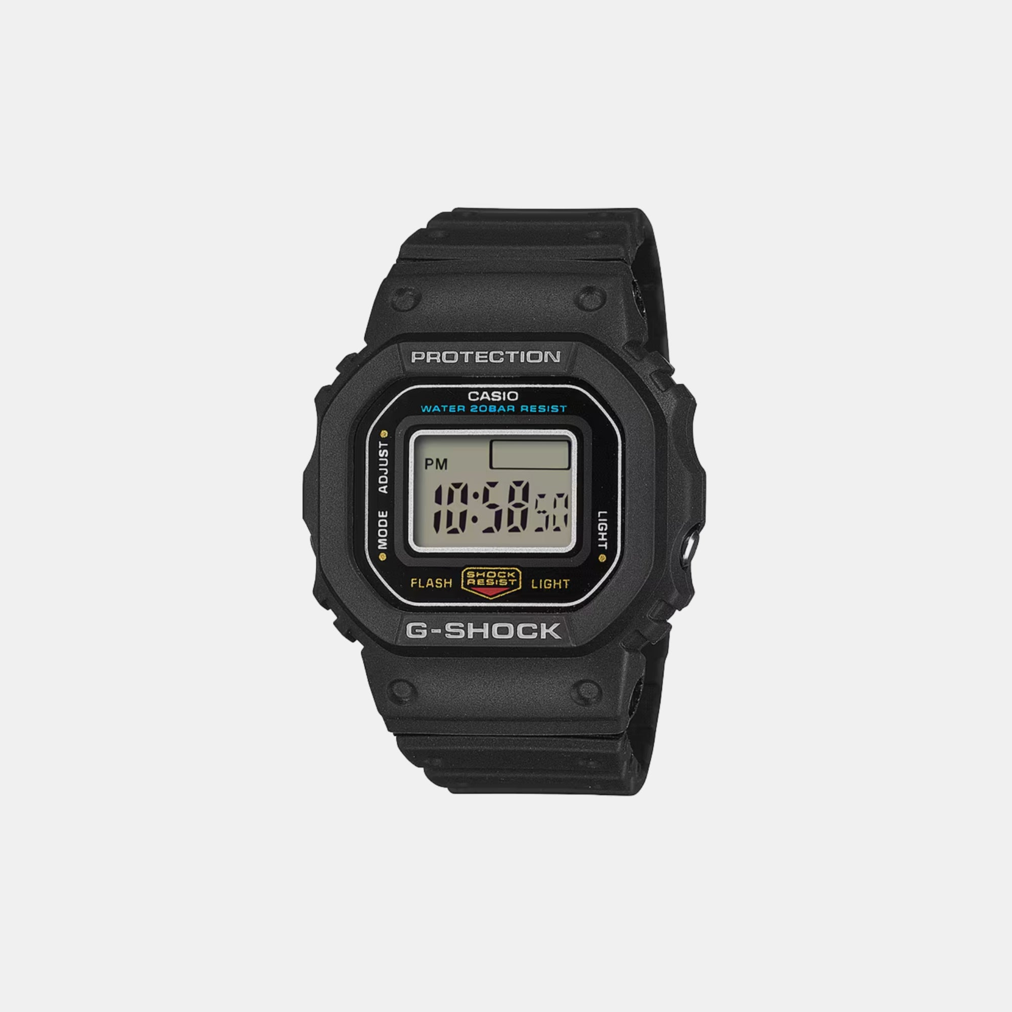 The Casio G-SHOCK DWN-5600-1DR features shock resistance and 200-meter water resistance for everyday and outdoor durability. Its digital display includes stopwatch, timer, alarms, and backlight for reliable use in any condition.
