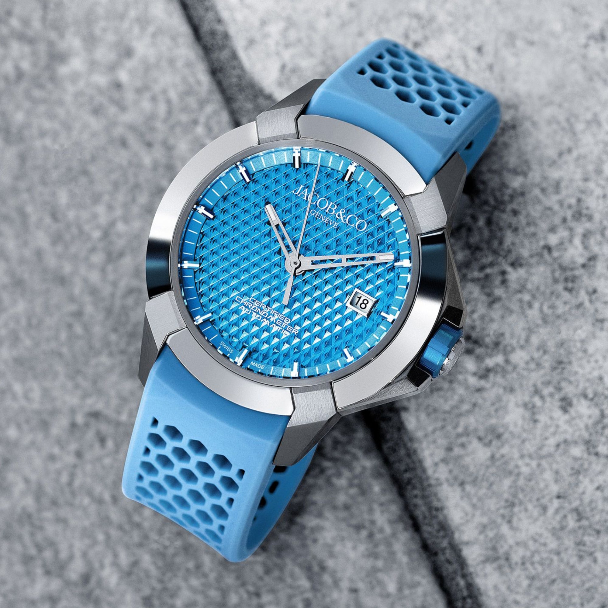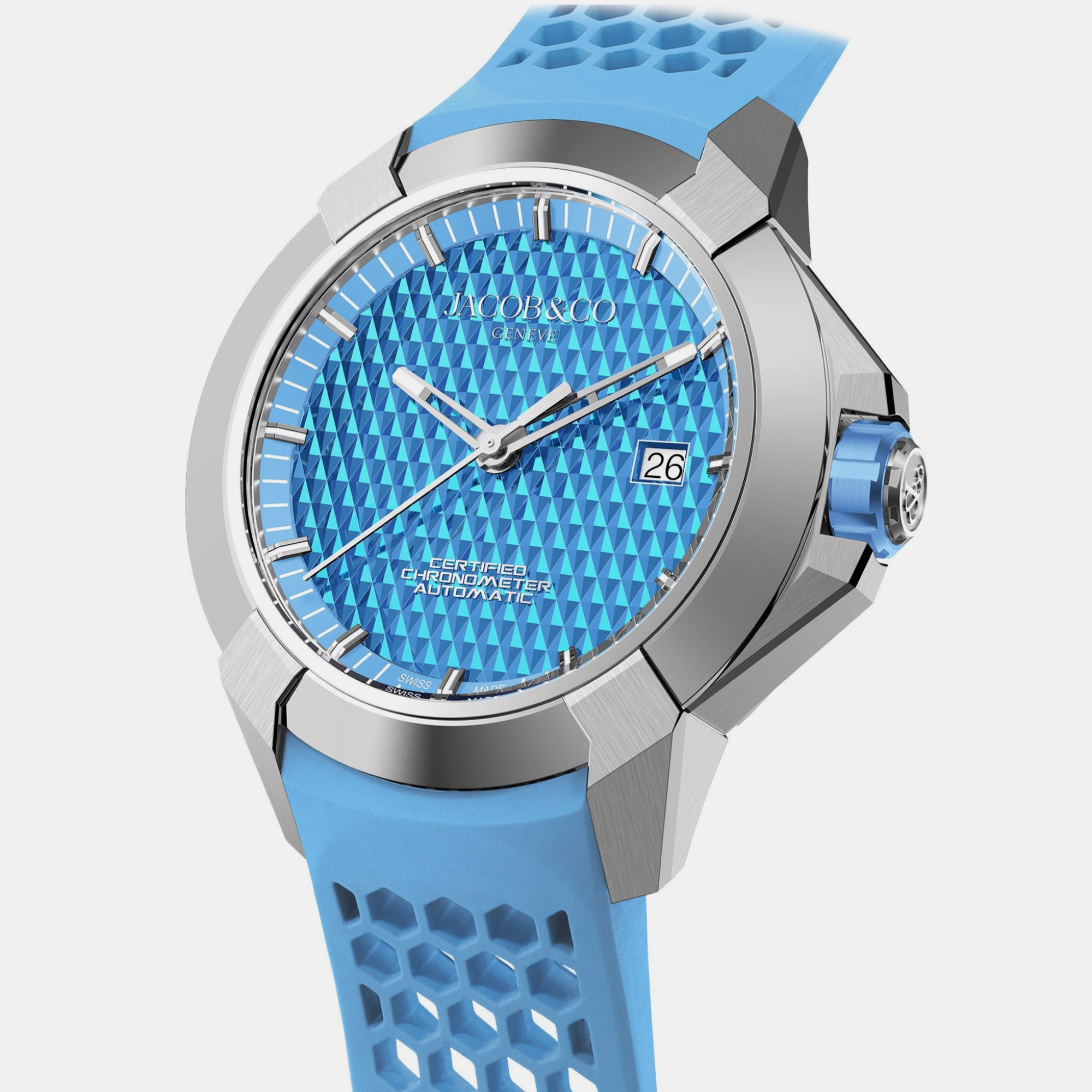 The diamond pattern on its surface is a powerful hint at Jacob & Co.'s dual nature, being a high watchmaking and high jewelry brand. Easy to wear on a daily basis, ergonomic and executed in a large number of liveries, Epic X Sport is the ultimate versatile Jacob & Co. timepiece.
