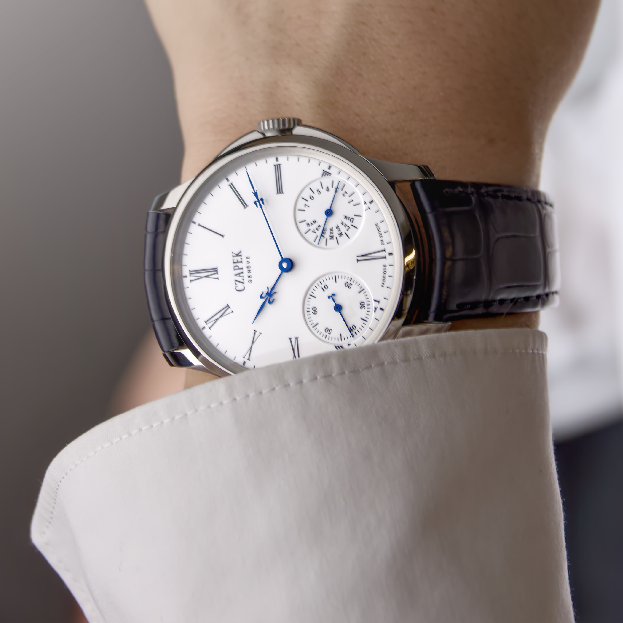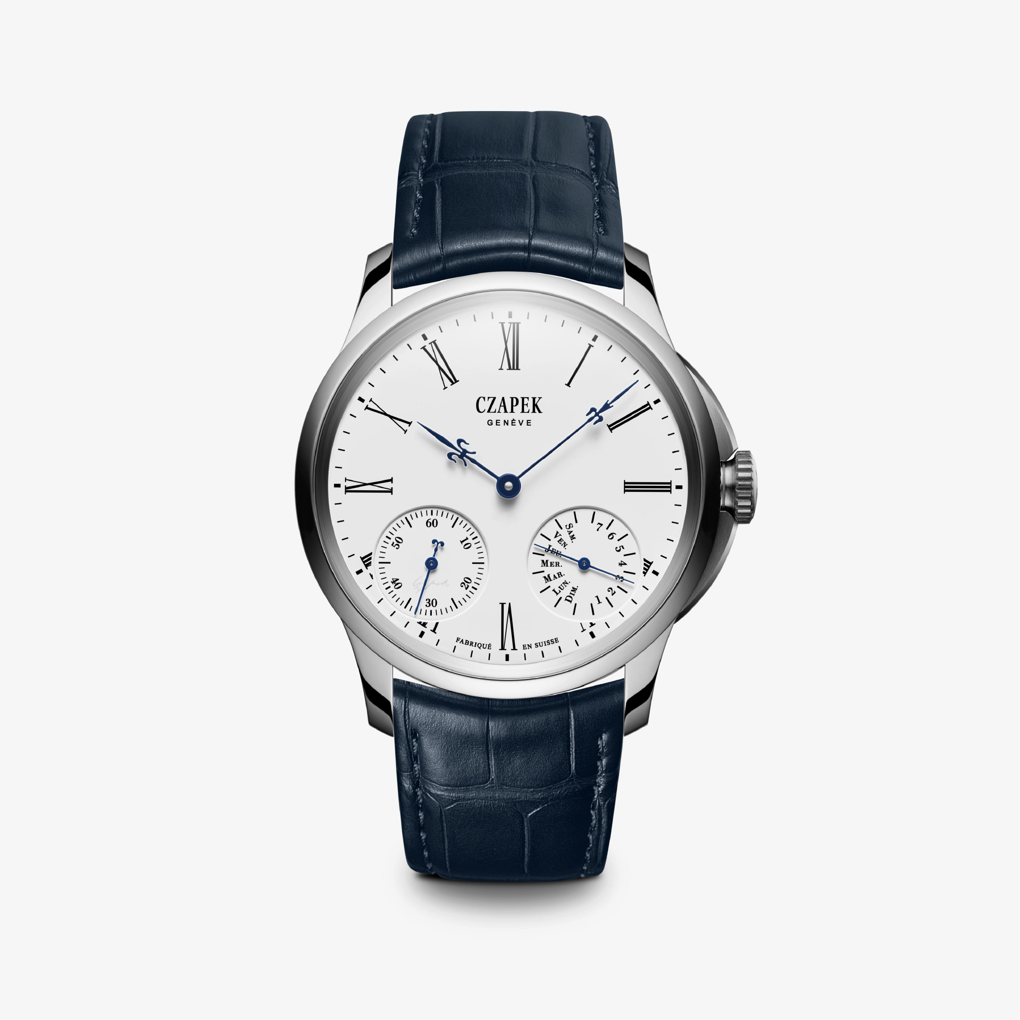 The Quai des Bergues N°25 brings Czapek’s most classical line into a modern stainless-steel execution. The pure white grand feu enamel dial, dual sub-dial display, and refined case architecture echo the earliest Czapek wristwatches while offering the updated 2025 aesthetic: sand-blasted case flanks, improved finishing, and customizable features such as hands and optional hidden inscription. Inside, the 7-day hand-wound calibre delivers both practicality and heritage, pairing twin barrels with pocket-watch-inspired architecture. At 40.5 mm, the N°25 offers a clean, contemporary take on Czapek’s original design language—old-world craft, modern proportions, and restrained elegance.