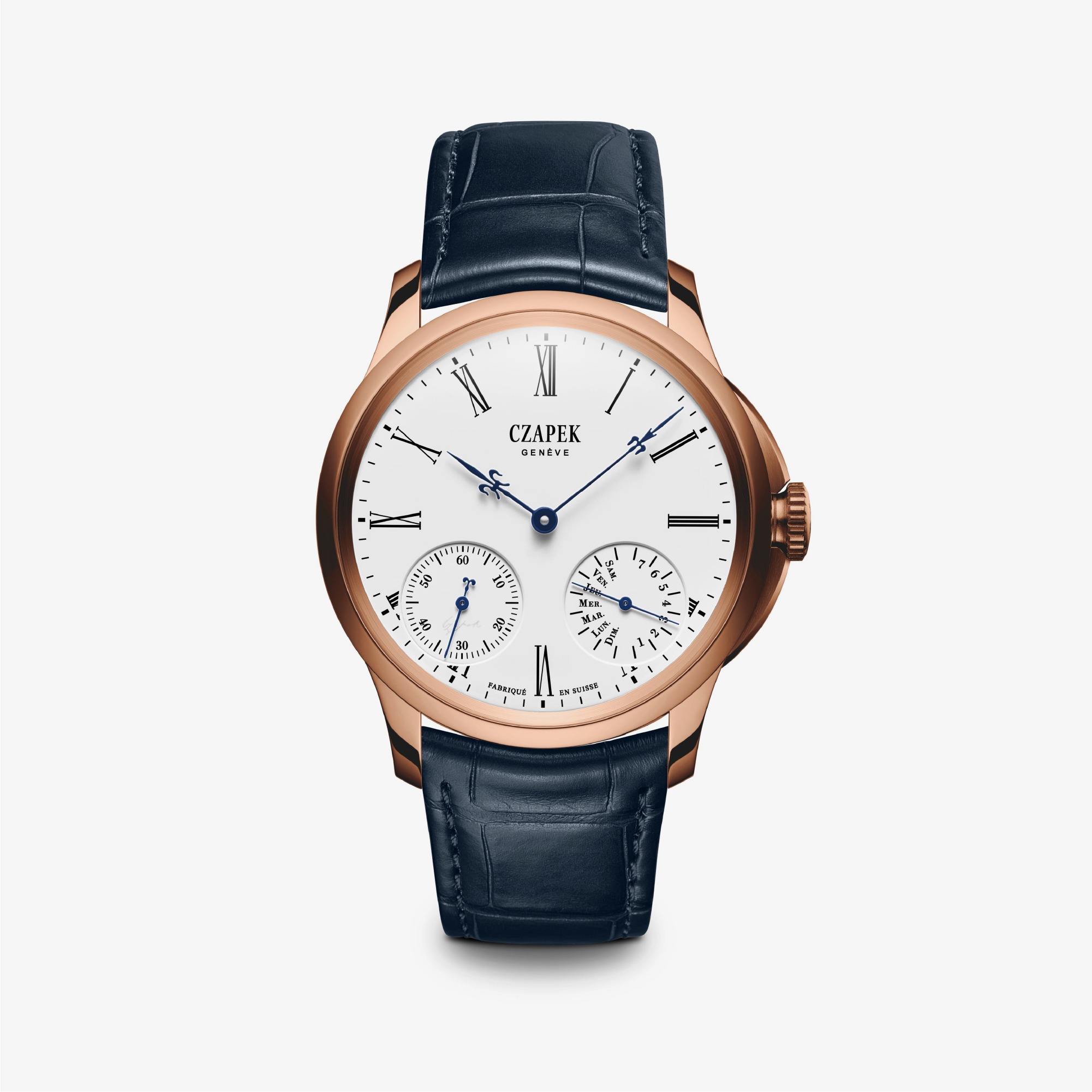The new Quai des Bergues N°33 refines one of Czapek’s most iconic designs—a modern continuation of the model that won the 2016 GPHG Public Prize. In warm 18K rose gold with a white grand feu enamel dial, the N°33 revisits classical aesthetics while introducing subtle 2025 upgrades: sand-blasted case flanks, refined finishing, and personalization options including historical Fleur-de-Lys hands or contemporary arrow hands. Owners may also choose a hidden enamel inscription, echoing the emotional narrative of the anniversary edition. Powered by Czapek’s 7-day hand-wound movement with twin barrels, the watch blends 19th-century pocket-watch architecture with modern precision. The 40.5 mm case becomes the new standard for the collection.
