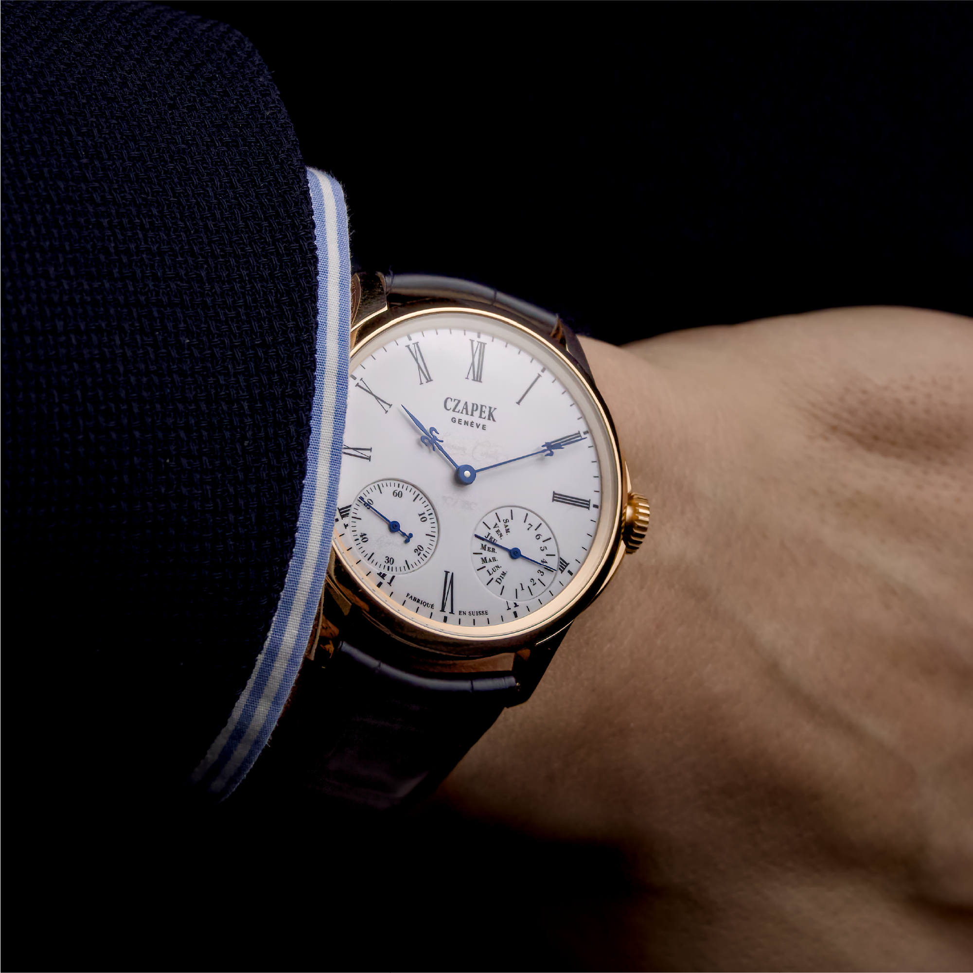The Quai des Bergues “Sursum Corda” closes Czapek’s anniversary year with a piece that feels both historical and deeply personal. Its white grand feu enamel dial hides a secret: the Latin phrase Sursum Corda—“Lift up your hearts”—visible only when light hits the enamel at the right angle. First spoken within the team during difficult chapters of the brand’s revival, it becomes a message carried quietly by the owner. A “10 / 180” engraving marks the dual milestones, while a historical Czapek signature rests inside the small-seconds subdial. Powered by the 7-day twin-barrel calibre drawn from 19th-century pocket-watch architecture, the piece balances tradition with modern refinement. At 40.5 mm, it introduces the new definitive case size for the collection.