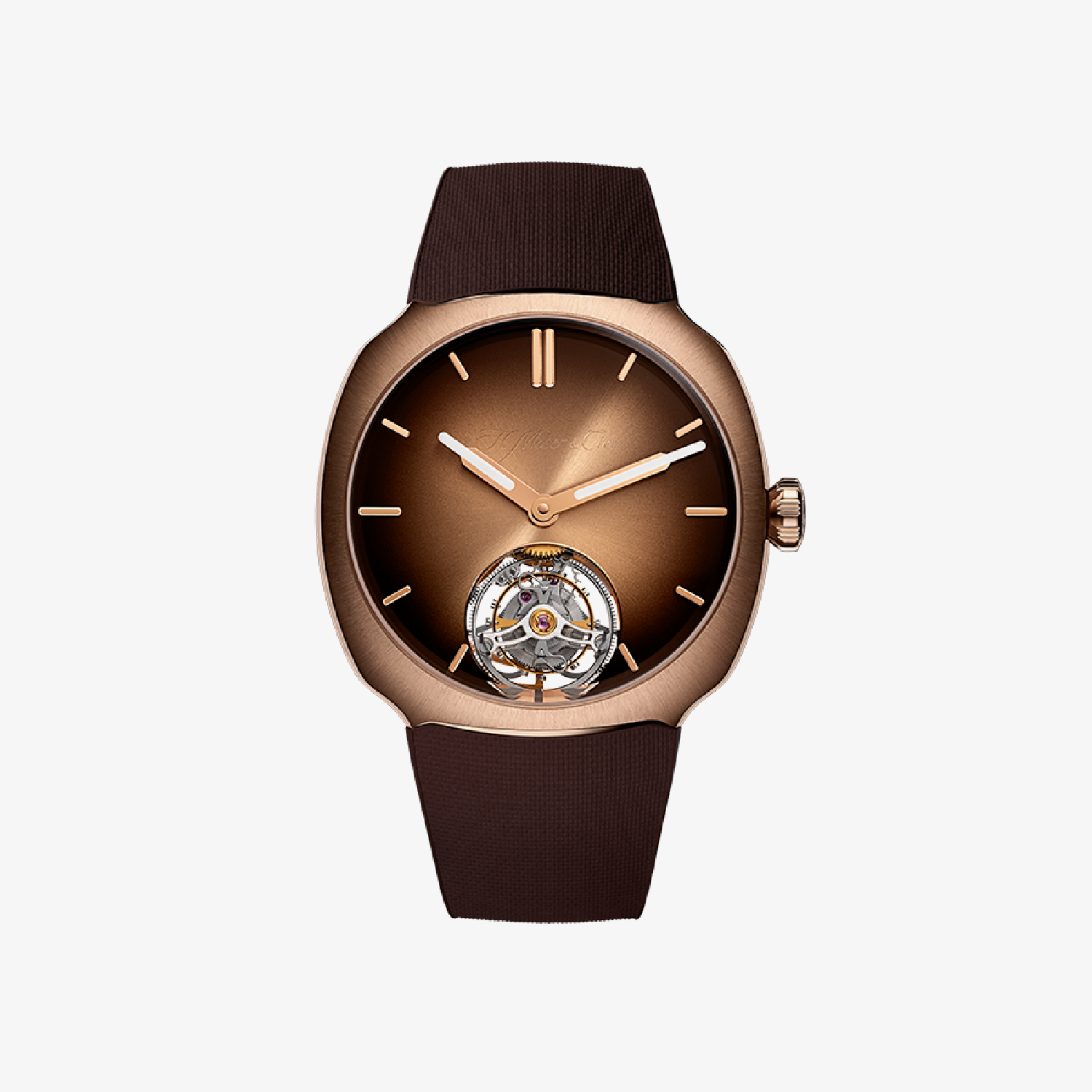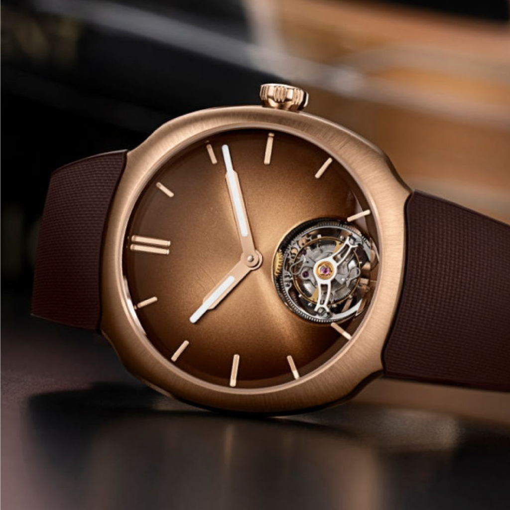 The Streamliner Tourbillon Pierre Gasly Edition is a creation born from close collaboration between H. Moser & Cie. and Formula 1 driver Pierre Gasly. Every detail reflects Gasly’s personal vision — from the deep Chocolate fumé dial, to the red gold case, to the choice of a flying tourbillon as the beating heart of the watch.