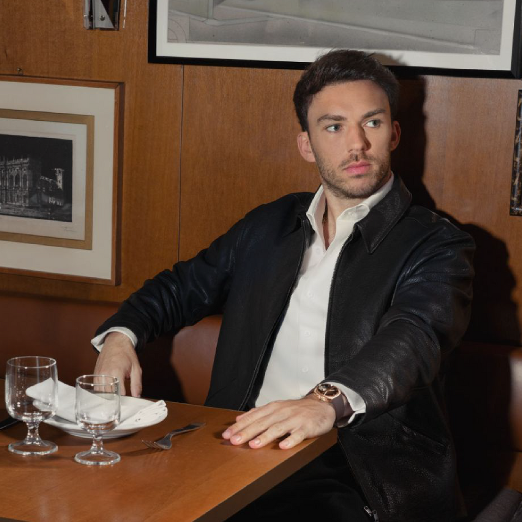 Paired with a chocolate-coloured rubber strap, the piece balances luxury with a sporting edge — a nod to Gasly’s racing world. Every element has been considered down to the millisecond, resulting in a timepiece that is both deeply personal and uncompromisingly refined.