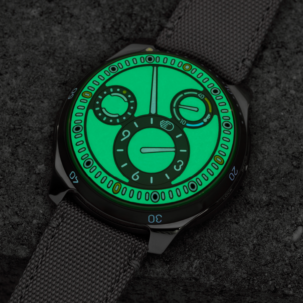 Introducing the Ressence TYPE 5 L, a revolutionary timepiece that transcends traditional watchmaking. The latest addition to our line of mechanical watches, the TYPE 5 L is a statement piece designed to spark connections and conversations in the most unexpected places. With its full Super-LumiNova® inlay, the entire dial glows brightly, ensuring superior legibility and making a bold statement whether you’re at a dimly lit art show or exploring the depths of the ocean.