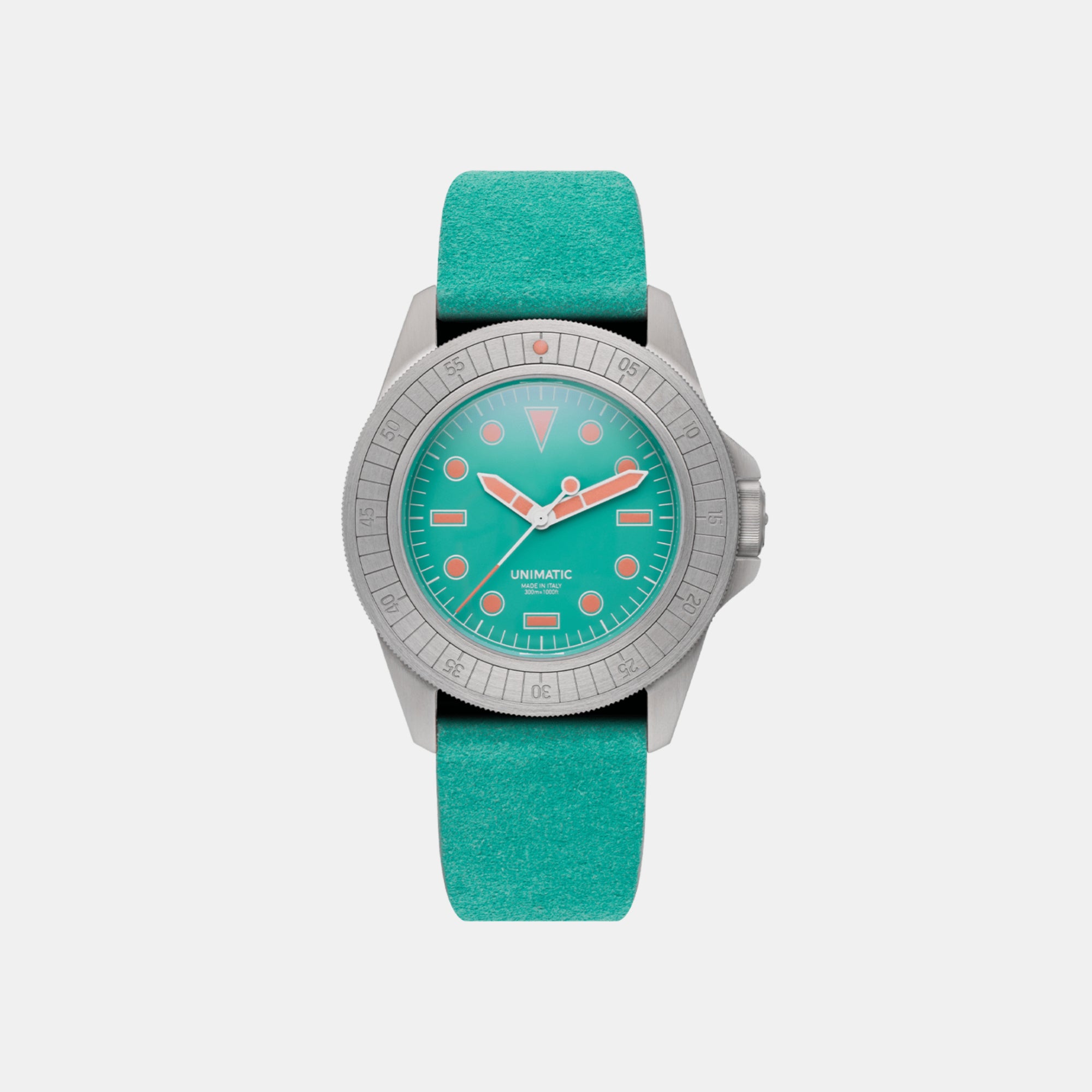 The UNIMATIC Modello Uno U1-RIO perfectly combines Italian craftsmanship and RIOCAM’s iconic Miami color palette, bringing coastal energy and bold individuality to a refined automatic diver watch.