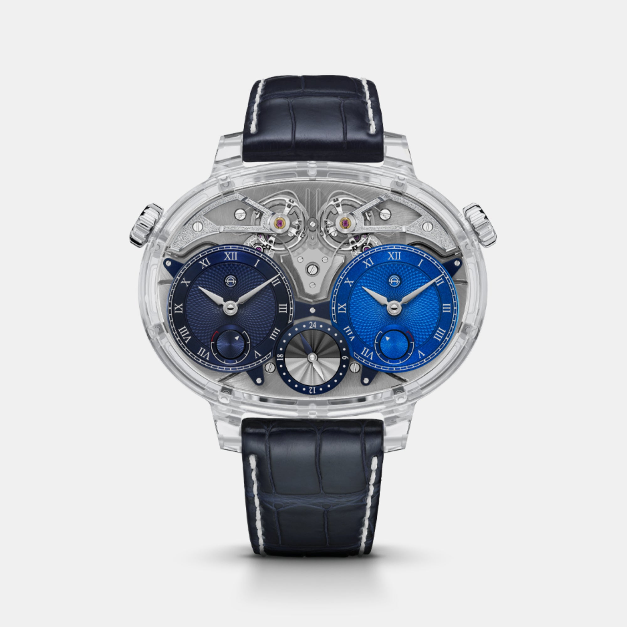 The Dual Time Resonance is limited to just 32 pieces in total, eight each in sapphire crystal, titanium, 18-carat white gold and 18-carat rose gold. 32 pieces that show, in an oval-shaped nutshell, what we do: push the limits of movement engineering, reveal the beauty of mechanics, and celebrate the art of hand finishing.