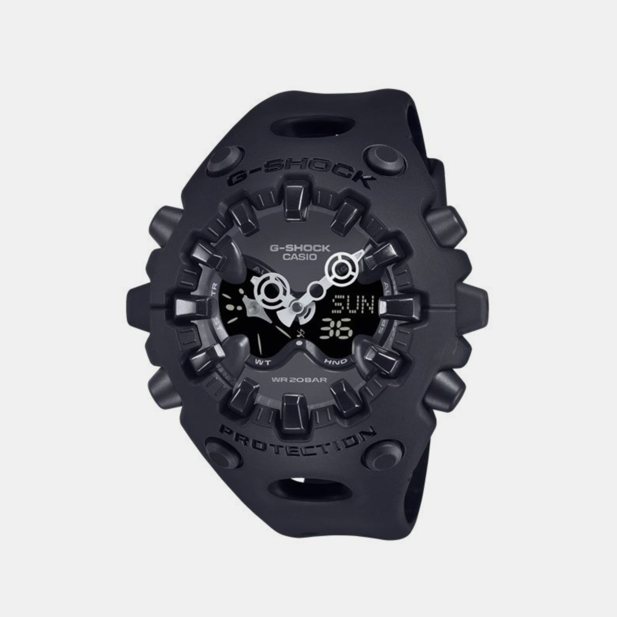 • High-impact design expressing ultimate toughness: Toughness-oriented, oversized design gives the timepiece an overwhelming sense of presence. Presenting an organic form with an integrated bezel and band construction, the watch incorporates bumper-type indexes and side buttons expressing powerful strength with a convex, protruding shape featuring sharply defined edges. In addition, the use of spherical glass gives the distinctive form an even more striking look.