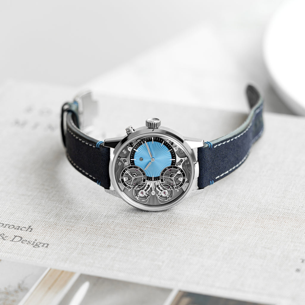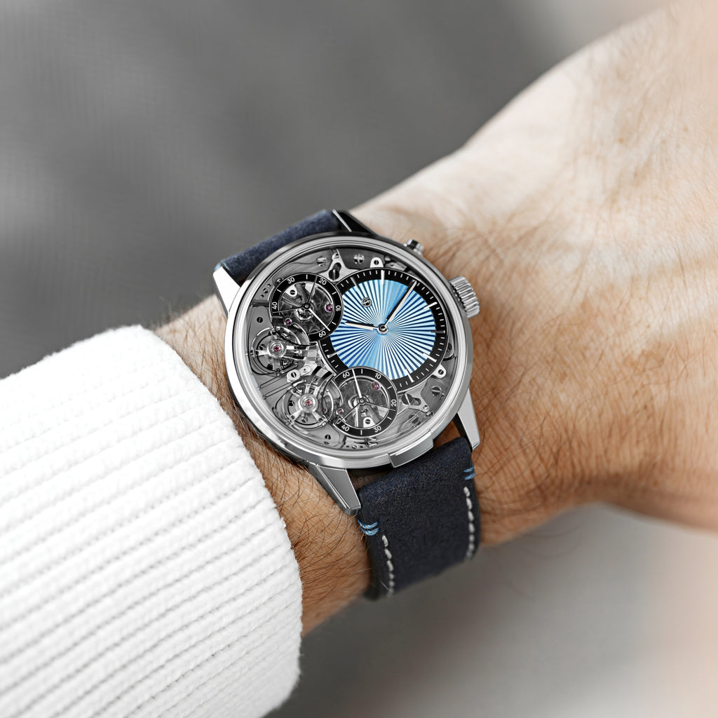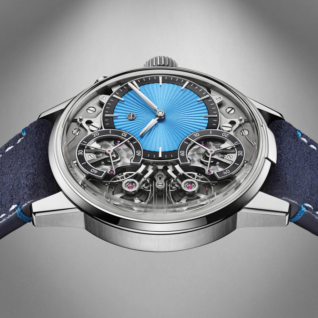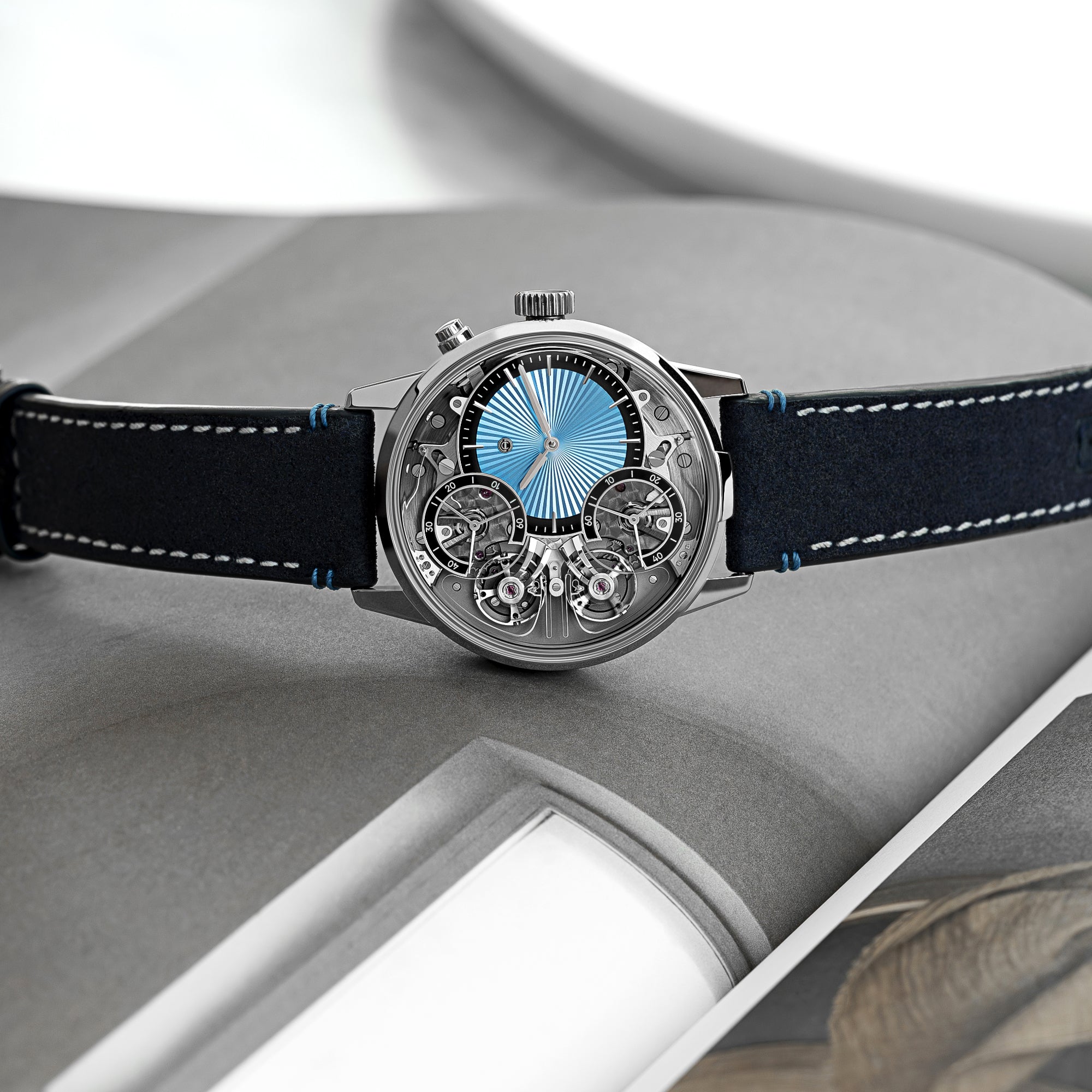 The Mirrored Force Resonance Ice Blue is a bold tribute to synchronised timekeeping and independent Swiss watchmaking.