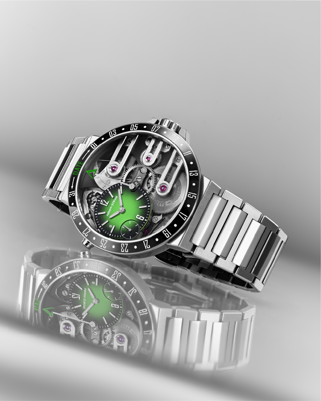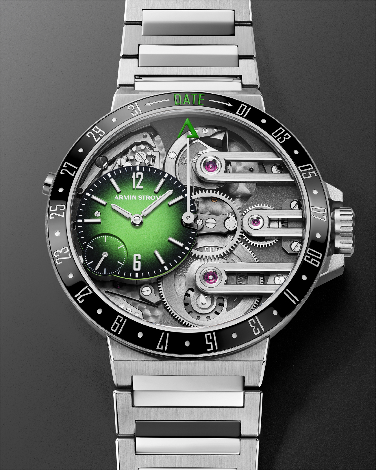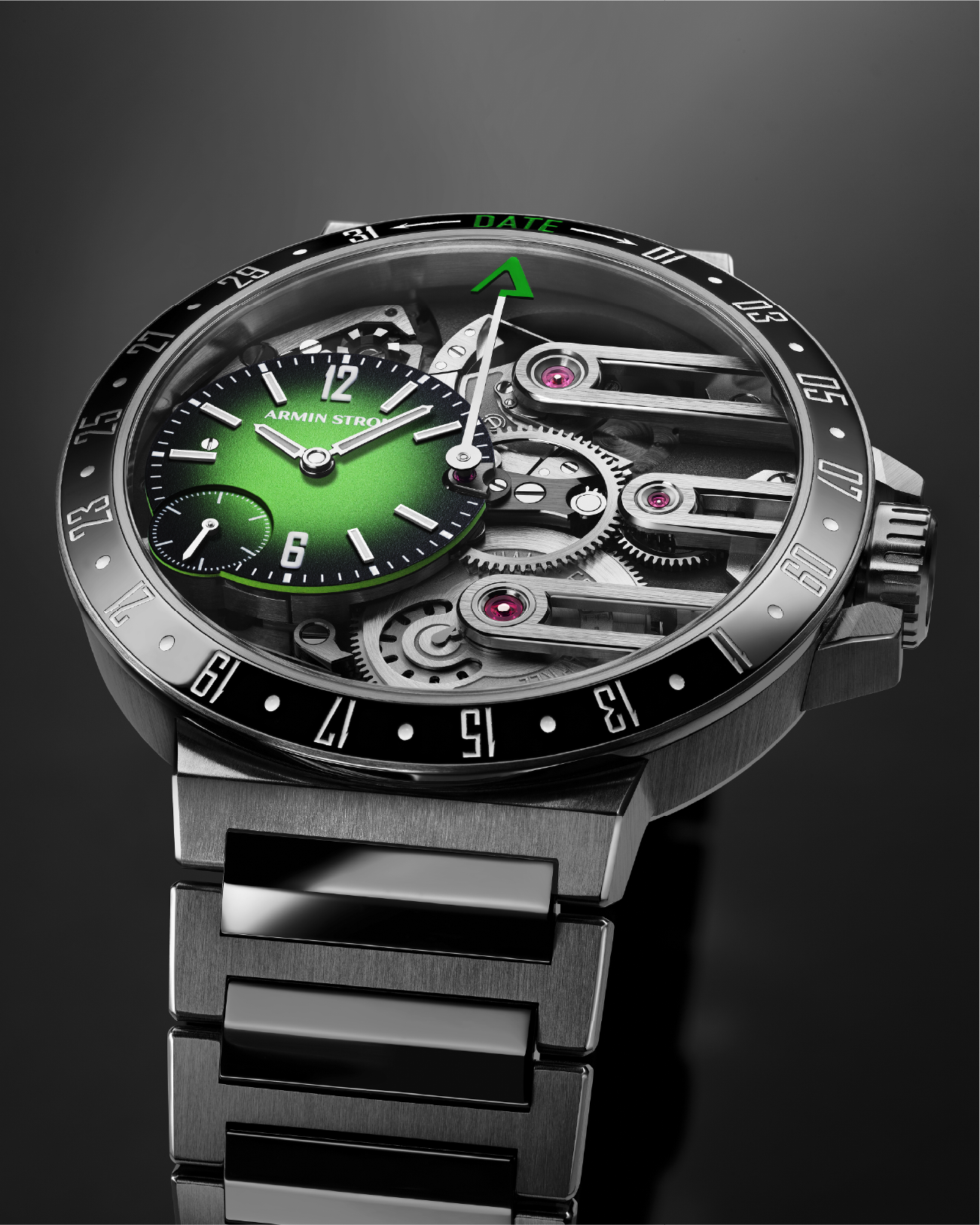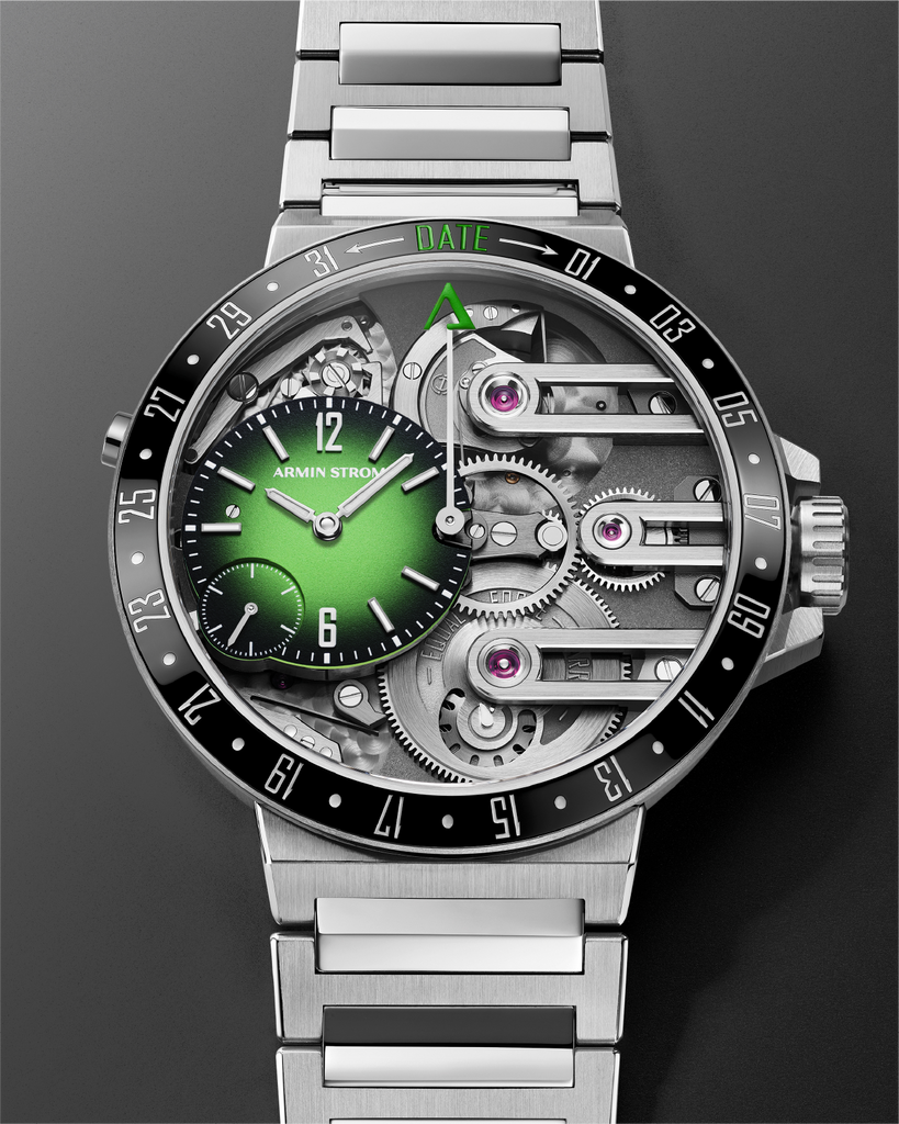 Bold. Vivid. Brilliantly mechanical. The Orbit Lime Green injects serious energy into haute horology, with a vibrant green fumé dial that fades to black at the edges — a dramatic stage for Armin Strom’s watchmaking theatre.