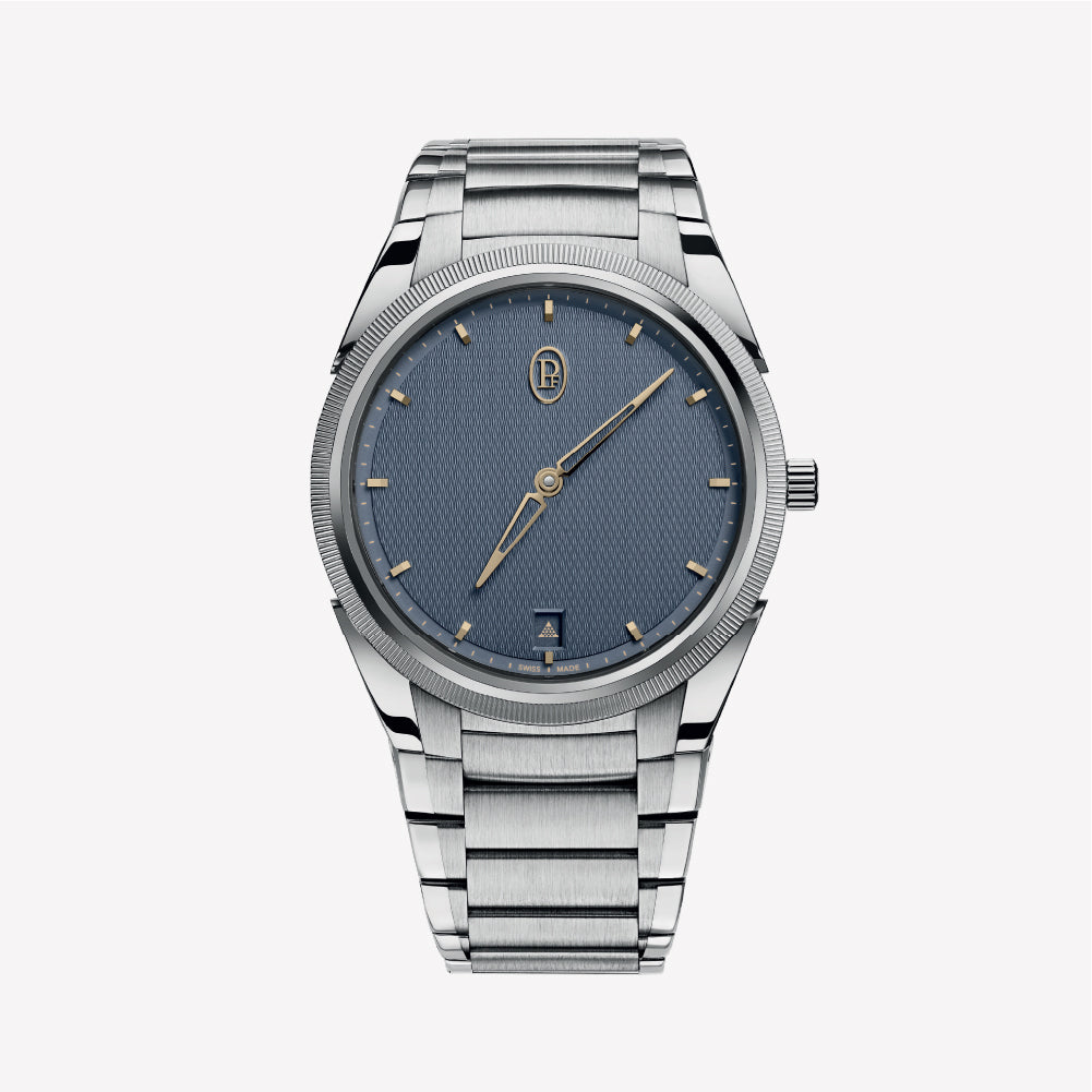 The Tonda PF Micro-Rotor measures 40 mm in diameter and owes its pure aesthetic to the uncluttered, matte guilloché dial. It inaugurates a new version of Parmigiani Fleurier's fundamental movement, the PF703.